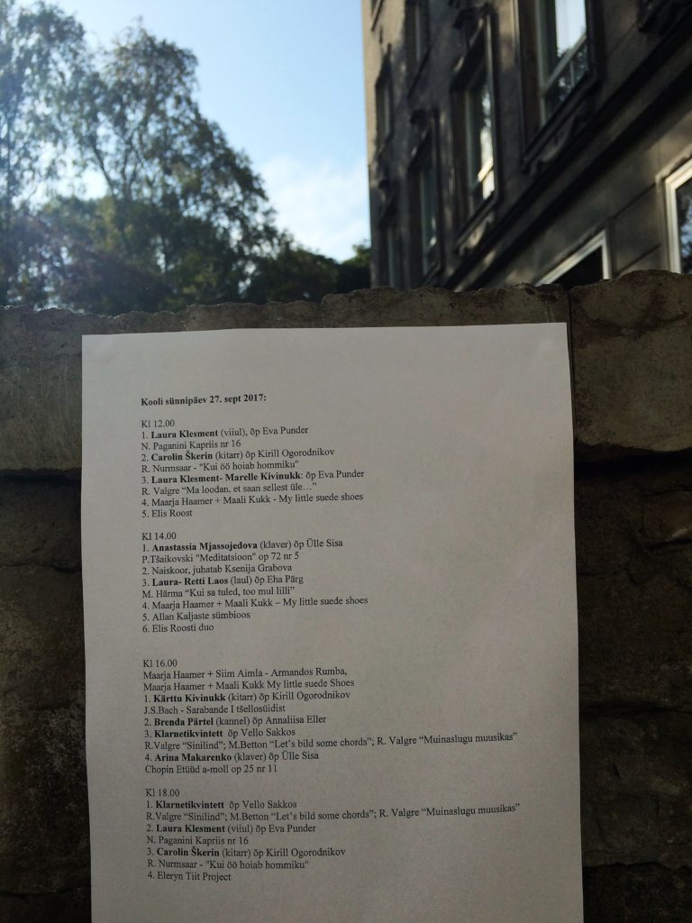 Suur tänu kõigile endistele ja praegustele õpilastele ja õpetajatele, kes andsid oma panuse 2. septembril Tallinna vanalinna erinevates paikades aset leidnud “Heliseva linnamüüri” kontsertürituse toimumisele. Mitmed muusikalised ettekanded tehti hoolimata vihmast, kuid nagu eelmiselgi aastal, ei lasknud meie muusikud end sellest häirida.