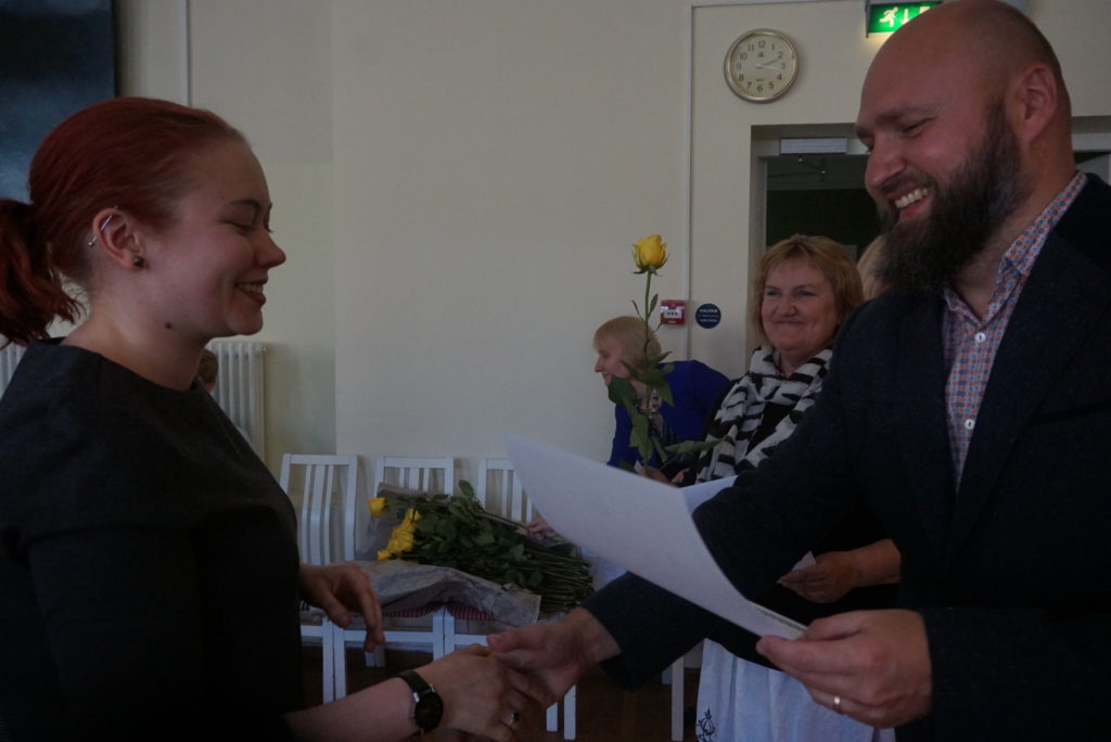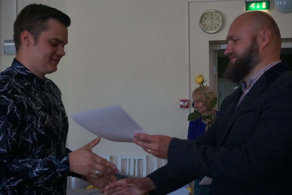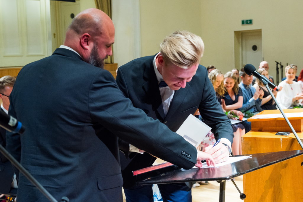 Aktusel said sĂ”na kooli direktor Ivo Lille, lĂ”petajad Paula Pajusaar ja Taavi-Hans KĂ”lar. KaasĂ”pilaste poolt andis tervitused edasi Saamuel Pedosk. Ăritust konfereeris Laura Rulli.