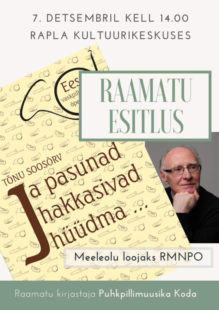 Raamatu esitlus-kontsert toimub 7. detsembril kell 14:00 Rapla Kultuurikeskuse kammersaalis.
