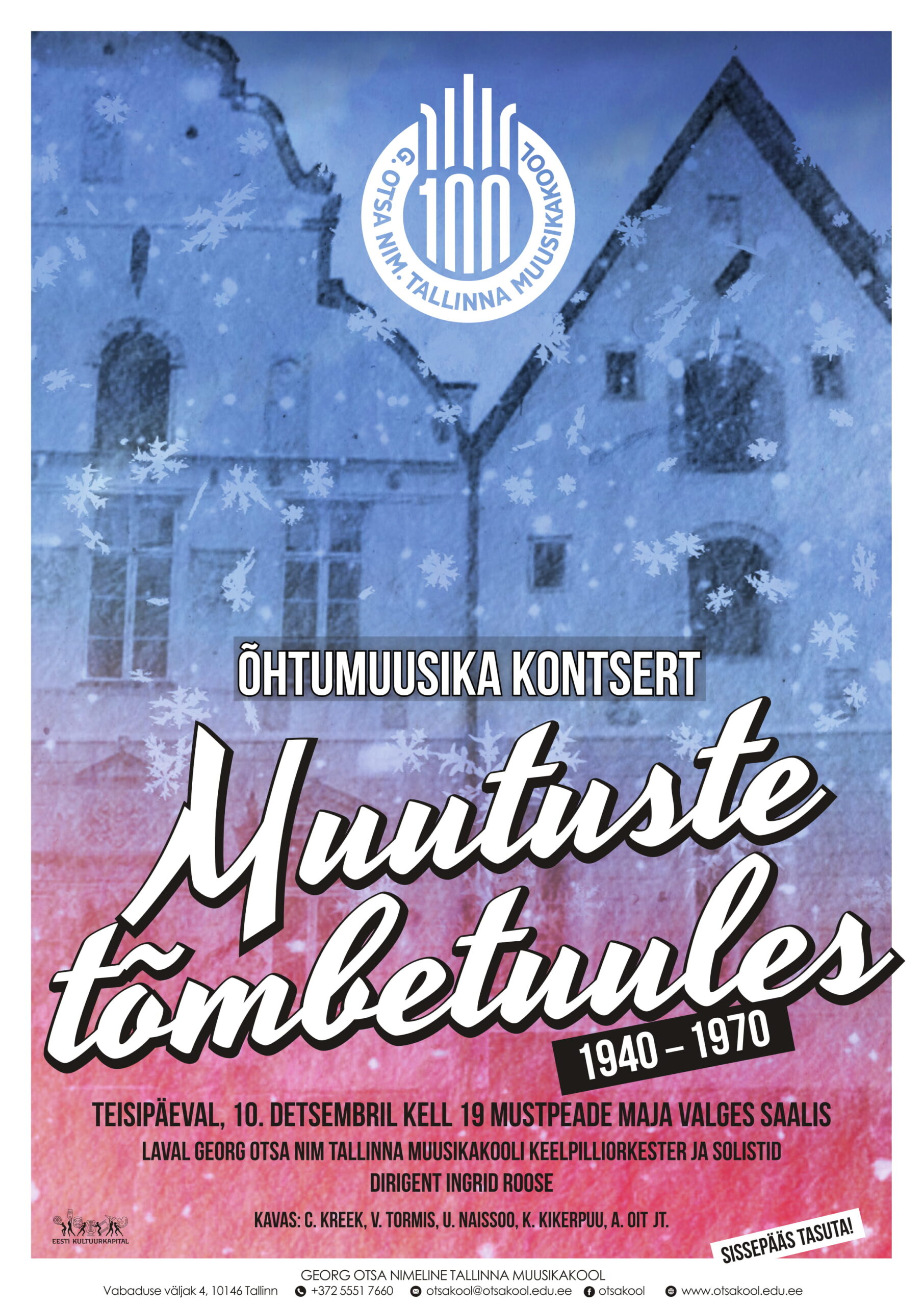 15. november 1944. Mustpeade maja saalis alustavad piduliku aktusega Ă”ppetööd Tallinna Riiklik Konservatoorium ning selle juurde kuuluv Tallinna Riiklik Muusikakool â Georg Otsa nimelise Tallinna Muusikakooli otsene eelkĂ€ija. TĂ€na, 75 aastat hiljem oleme Mustpeade maja saalis, et heita pilk Otsa kooli ajalukku aastatel 1940â70, mis vaatamata oma heitlikkusele tĂ”id Eesti muusikamaastikule hulgaliselt andekaid muusikuid. Kontserdi kava on kokku pandud just nende heliloojate muusikast, kes antud perioodil tollase Tallinna Riikliku Muusikakooliga kuidagiviisi seotud olid.