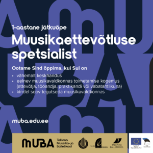 MuusikaettevÔtluse spetsialisti Ôpe toimub 1-aastase jÀtkuÔppena, mis eeldab lisaks keskharidusele muusikavaldkonnas toimetamise kogemusi.